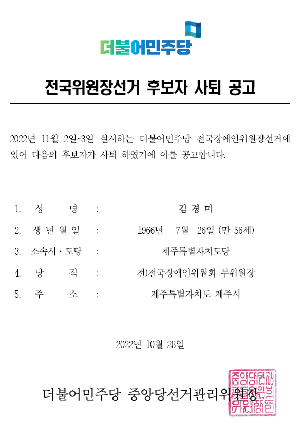 전국위원장 선출을 위한 후보자 합동연설회 개최 공고