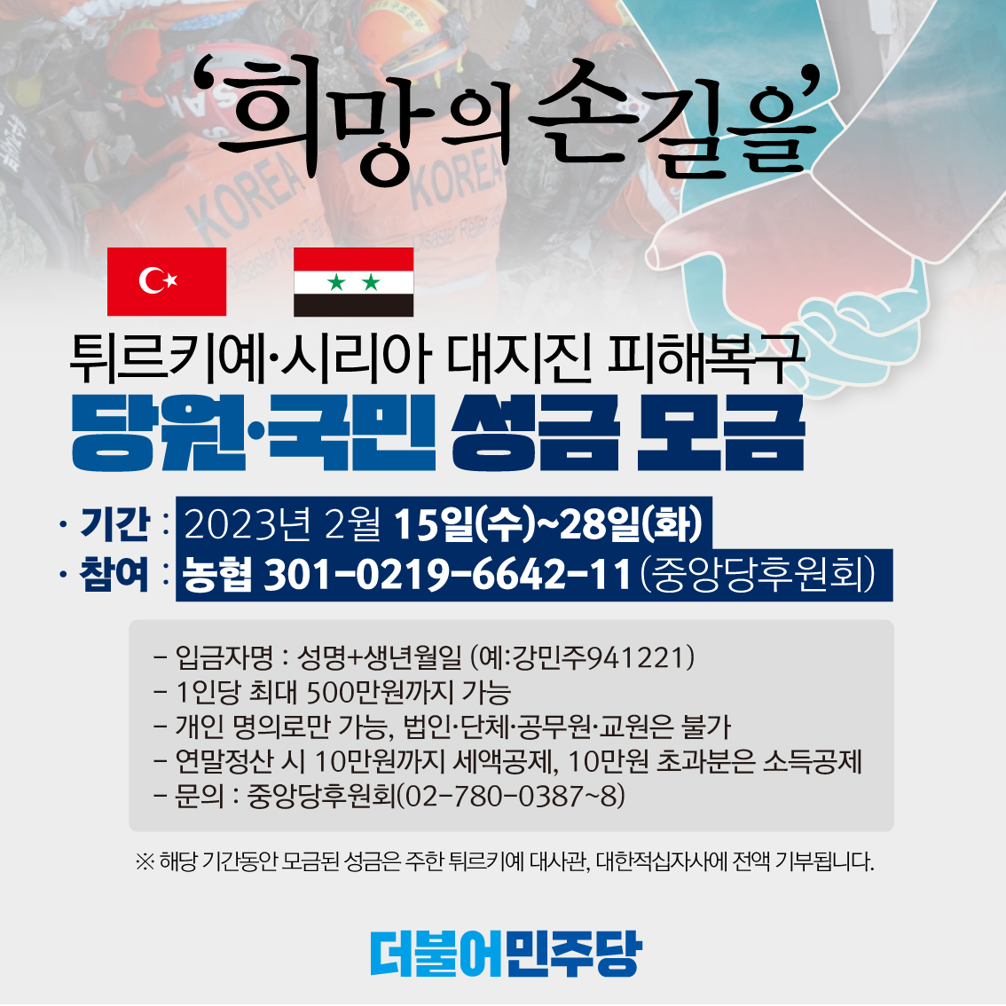 튀르키예·시리아 대지진 피해복구 당원·국민 성금 모금