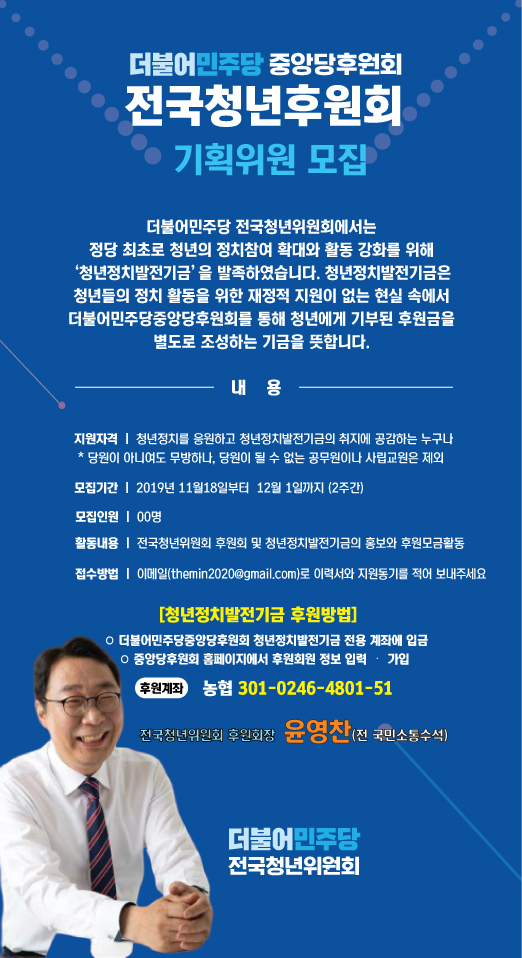 [더불어민주당 중앙당 후원회] 전국청년후원회 기획위원 모집