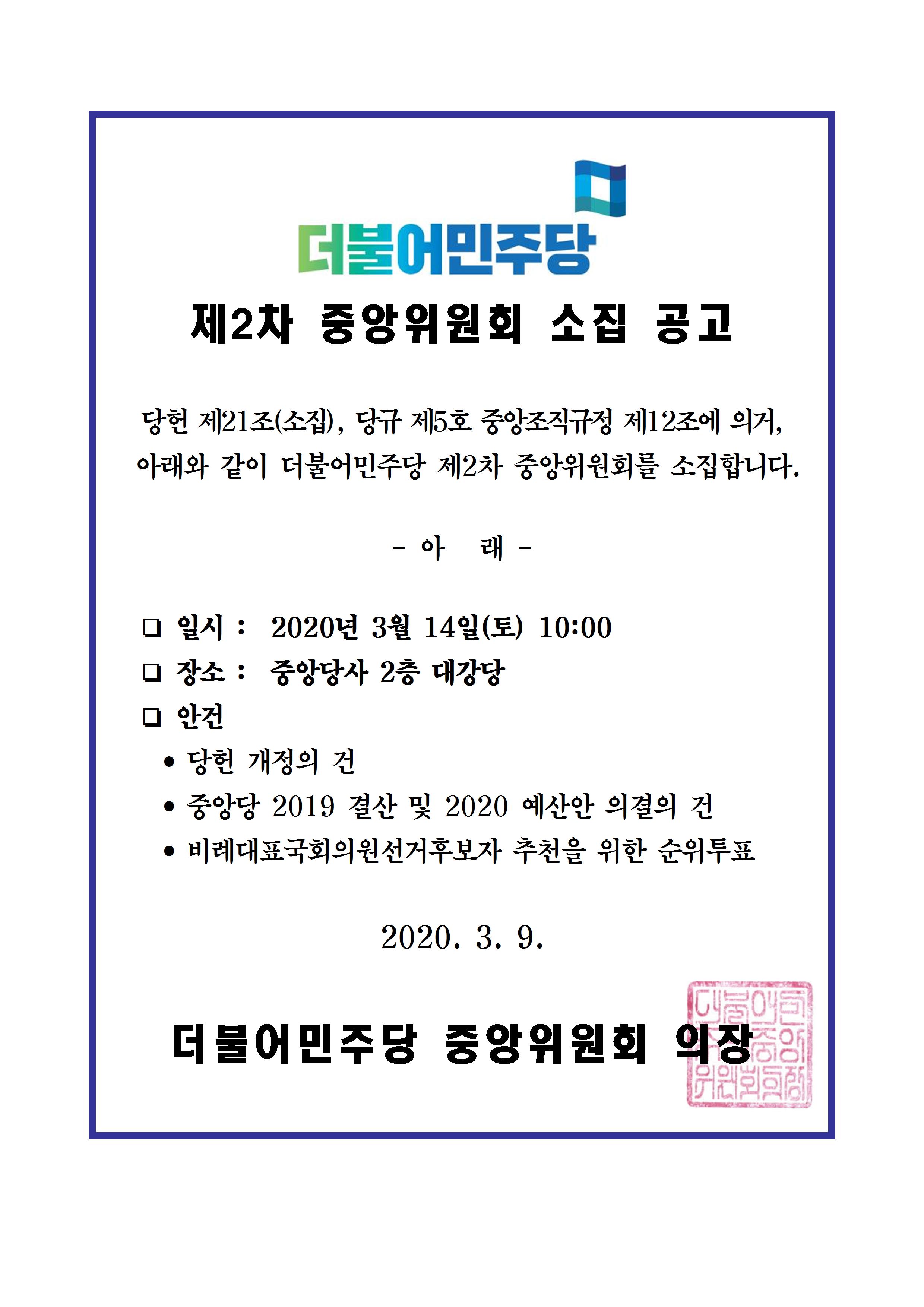 제21대 국회의원선거 경선후보자 등록 공고(8차, 11개지역)