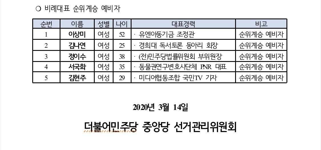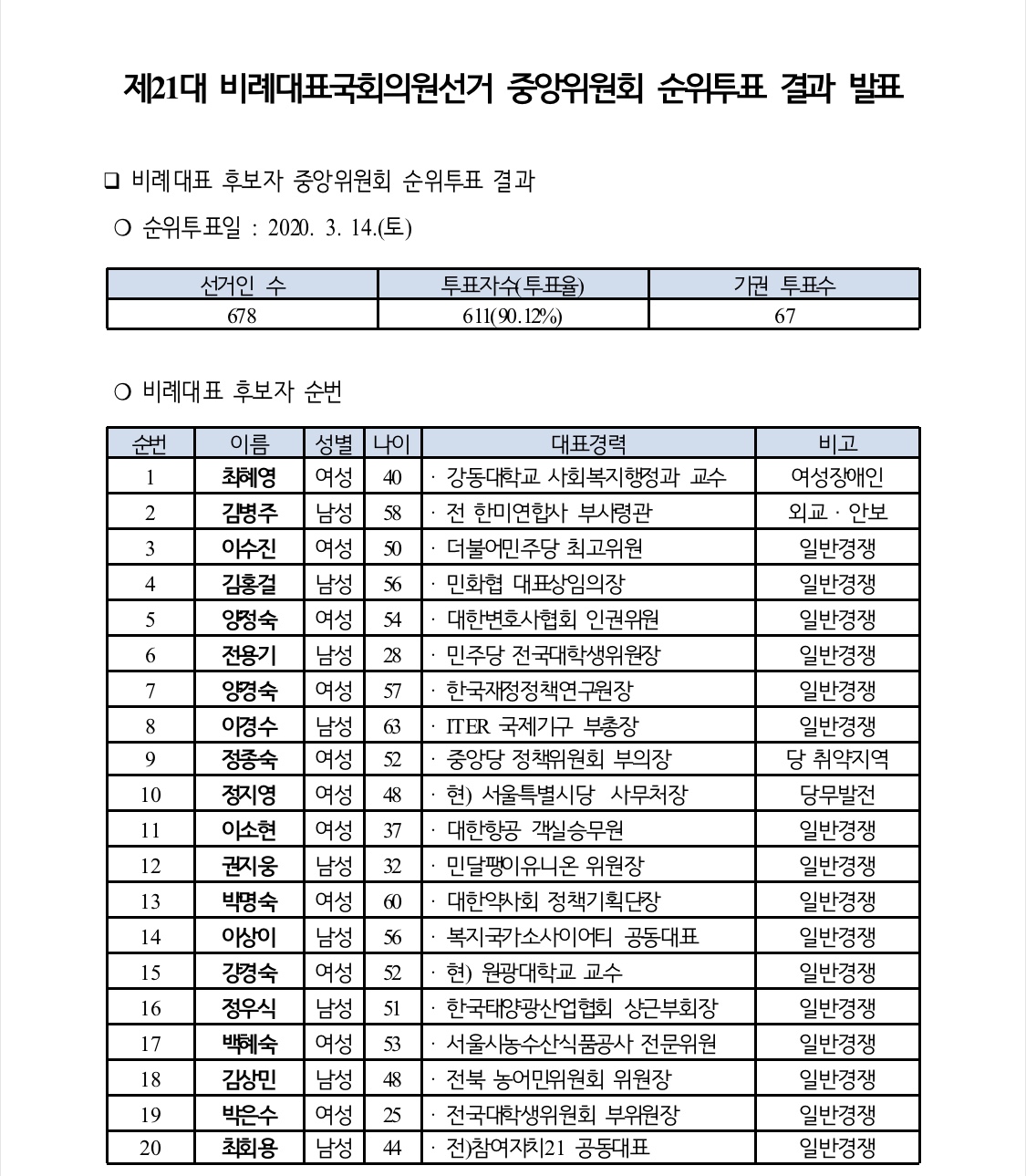 제21대 비례대표국회의원선거 중앙위원회 순위투표 결과