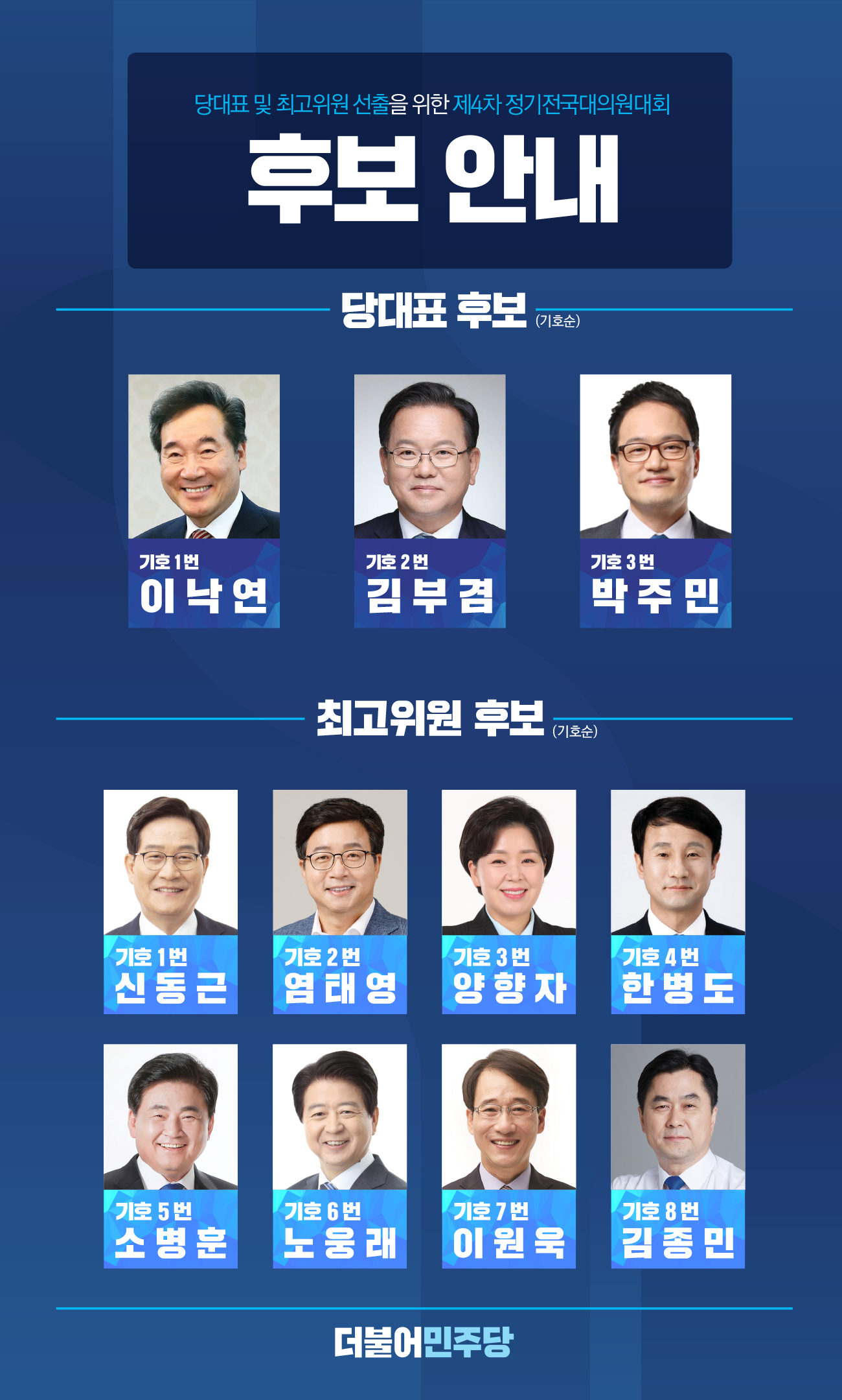 당대표 및 최고위원 본경선 후보등록 공고