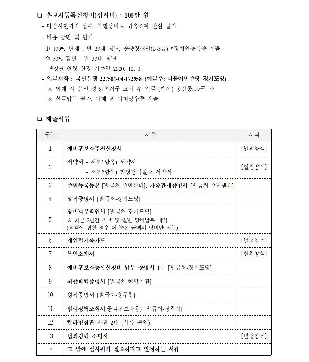2021년 재·보궐선거 경기도당 공직선거 예비후보자 신청 공모 공고 (기초)