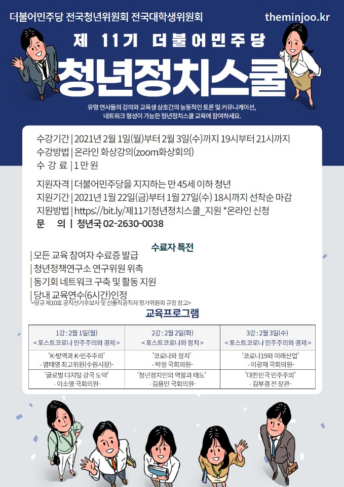지원방법 : https://bit.ly/제11기청년정치스쿨_지원 *온라인 신청