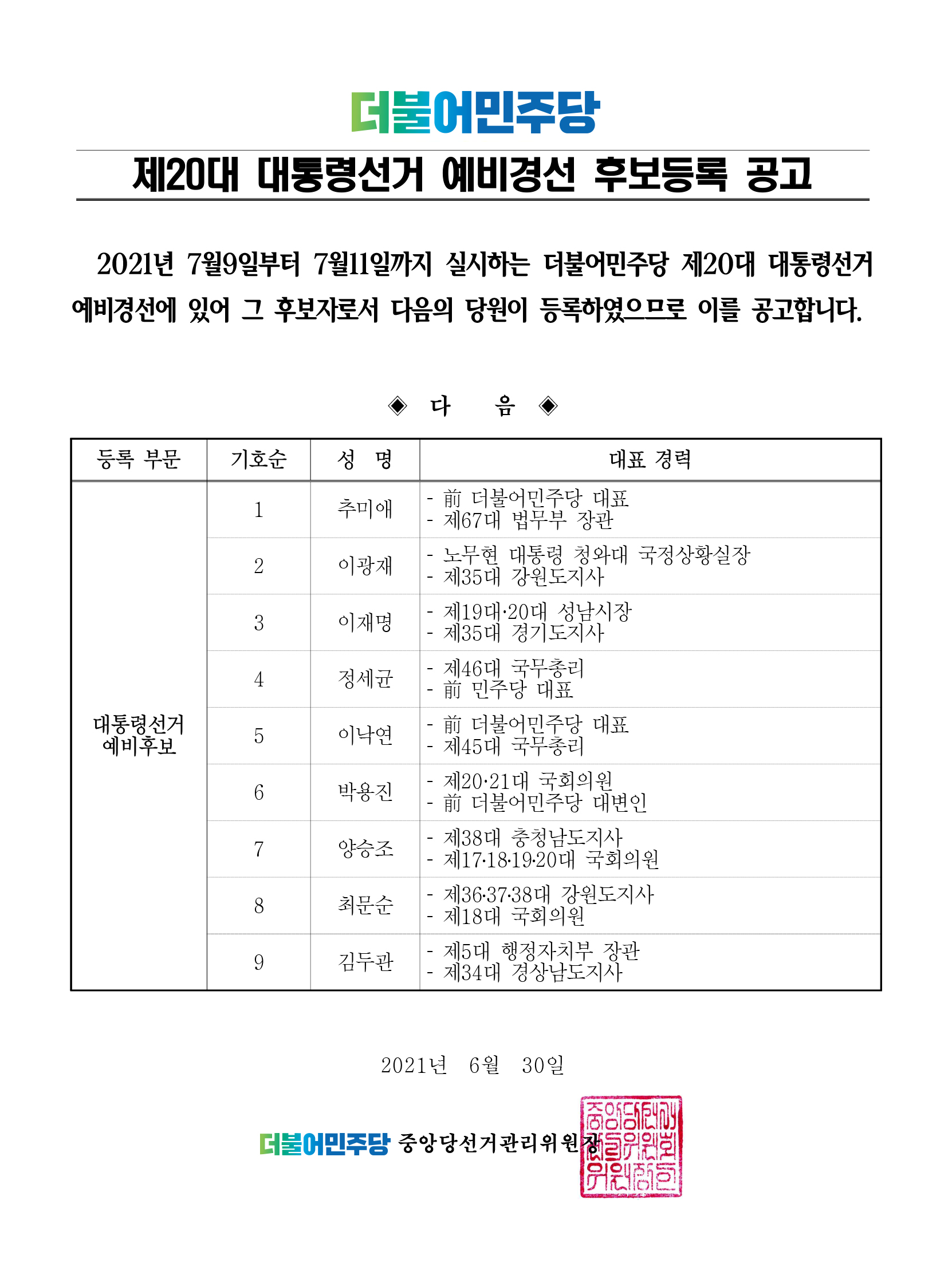 제20대 대통령 선거 후보자 선출 경선 국민·일반당원 선거인단 모집 안내