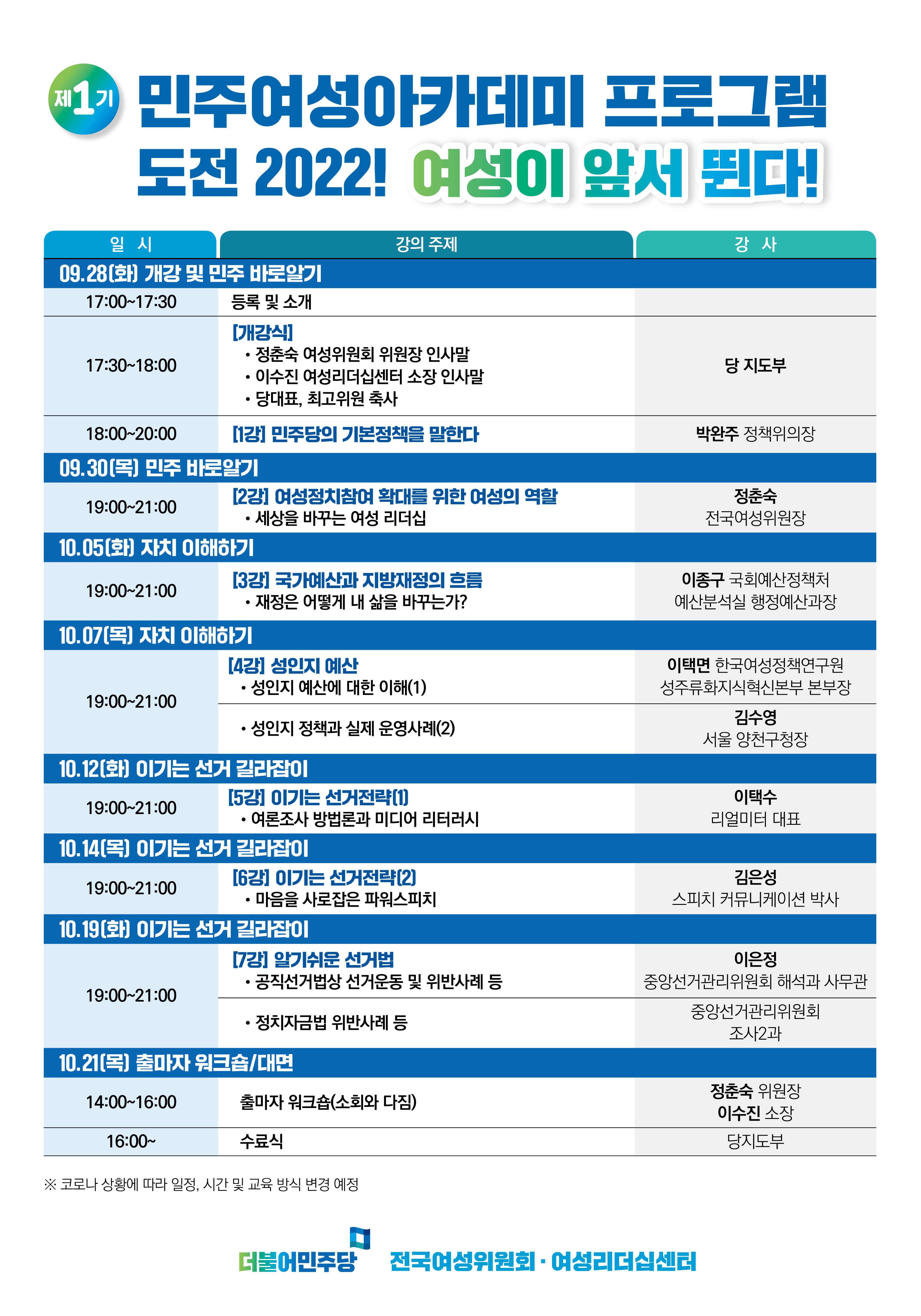 [제1기 민주여성정치아카데미] 수강생 모집 안내