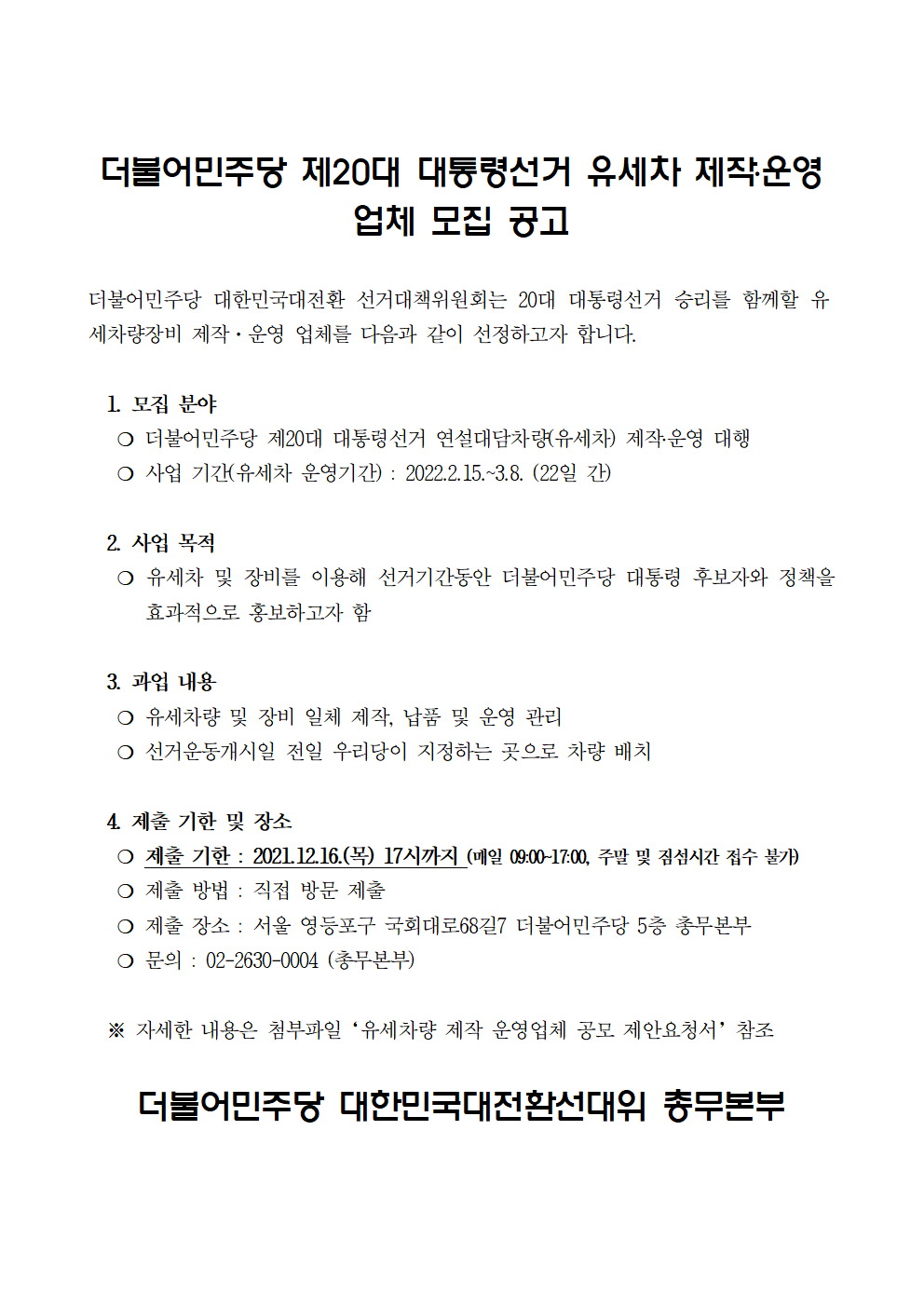 211210_제안요청서_더불어민주당_제20대_대통령선거_유세차량_제작운영업체_공모_제안요청서_ver_3.hwp