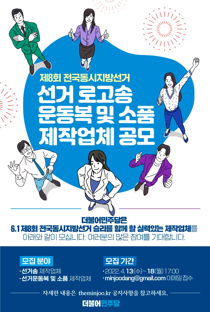 더불어민주당은 6.1 8회 전국동시지방선거 승리를 함께 할 실력있는 제작업체를