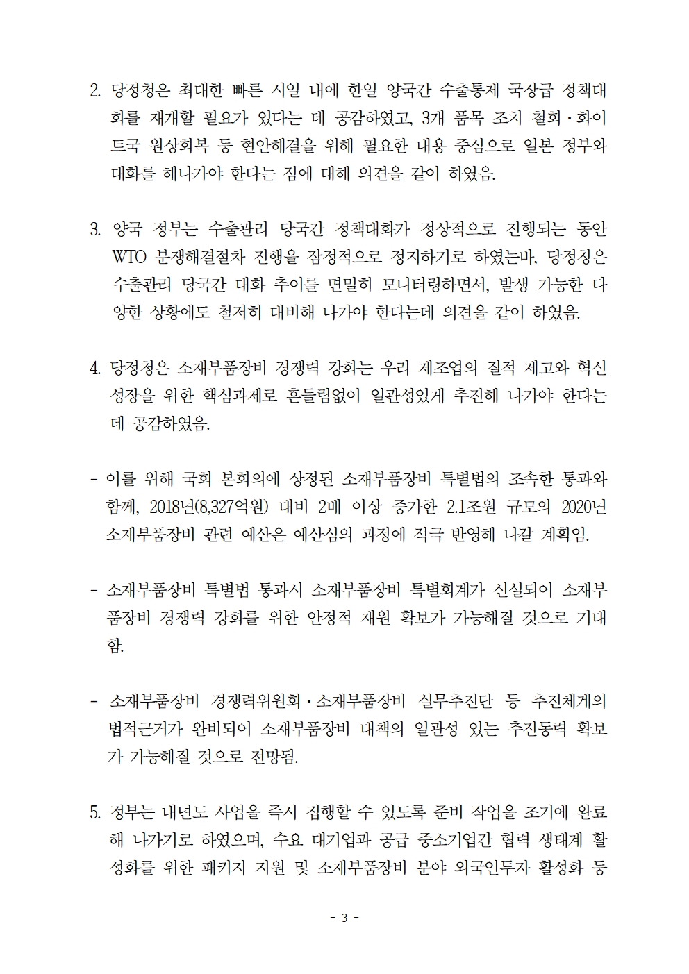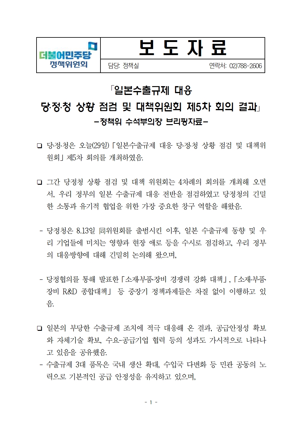 [보도자료] 일본 수출규제대응 당정청 상황점검 및 대책위원회 5차 회의 결과