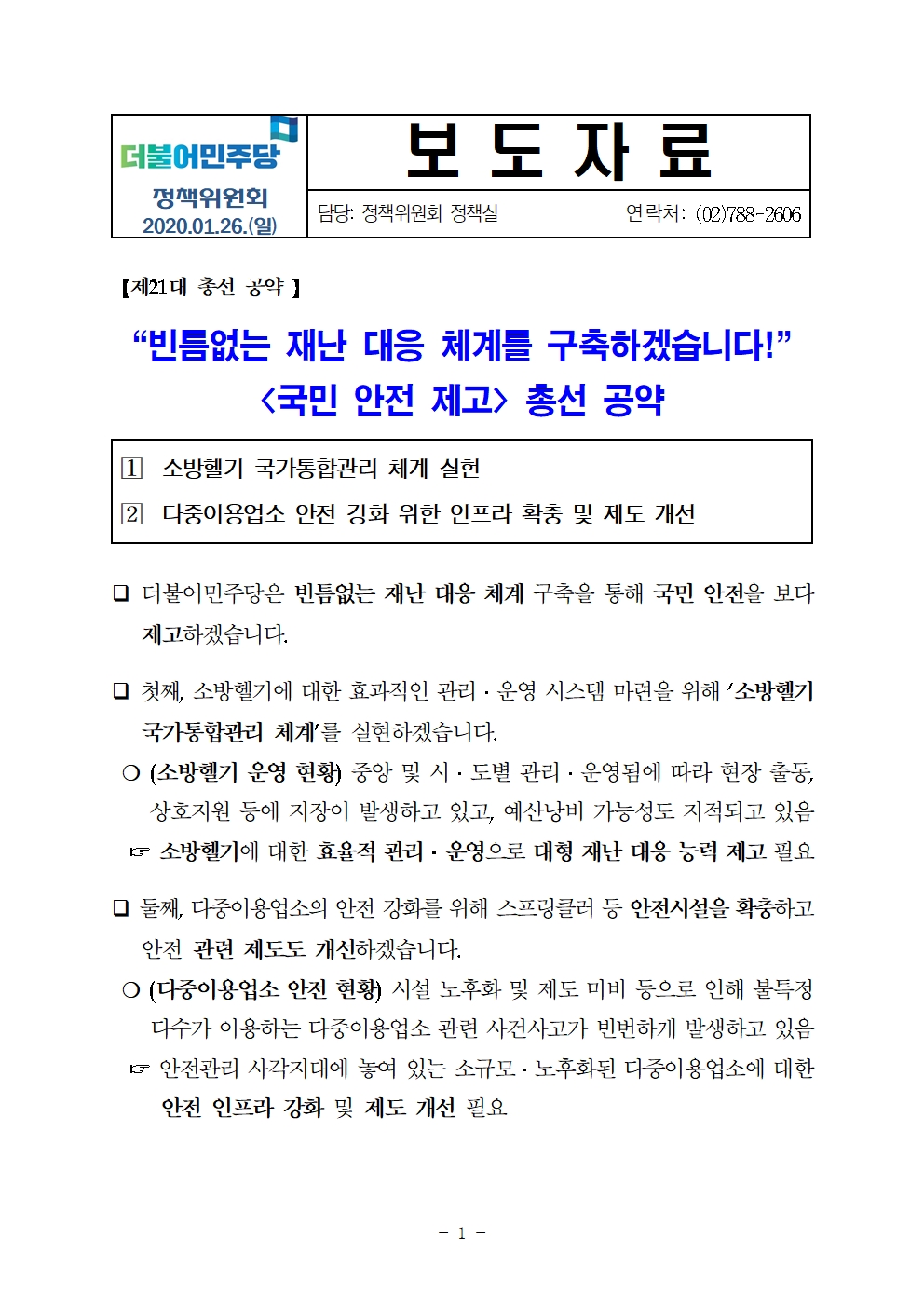 200126_보도자료(정책위)_재난_대응_체계_총선공약_수정.hwp