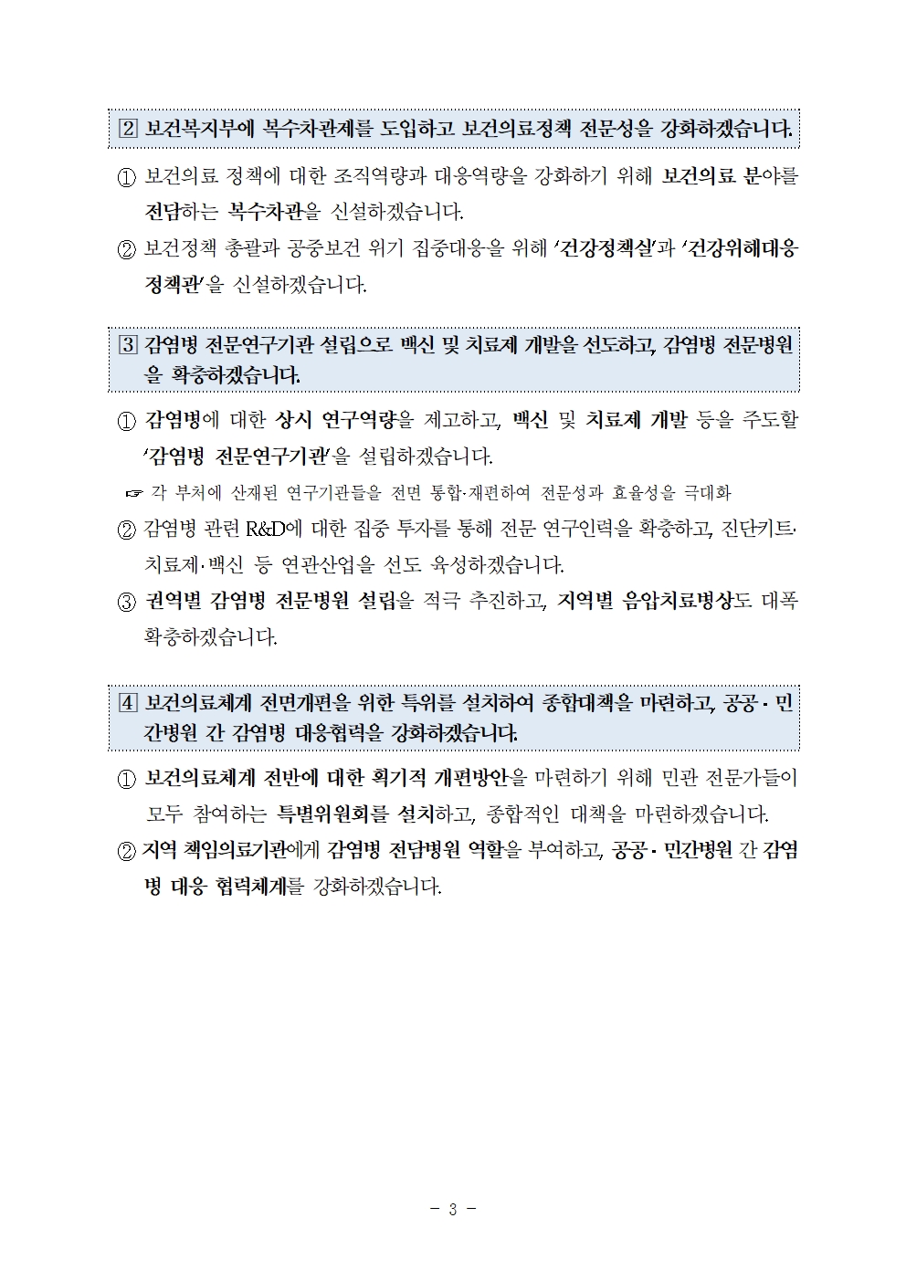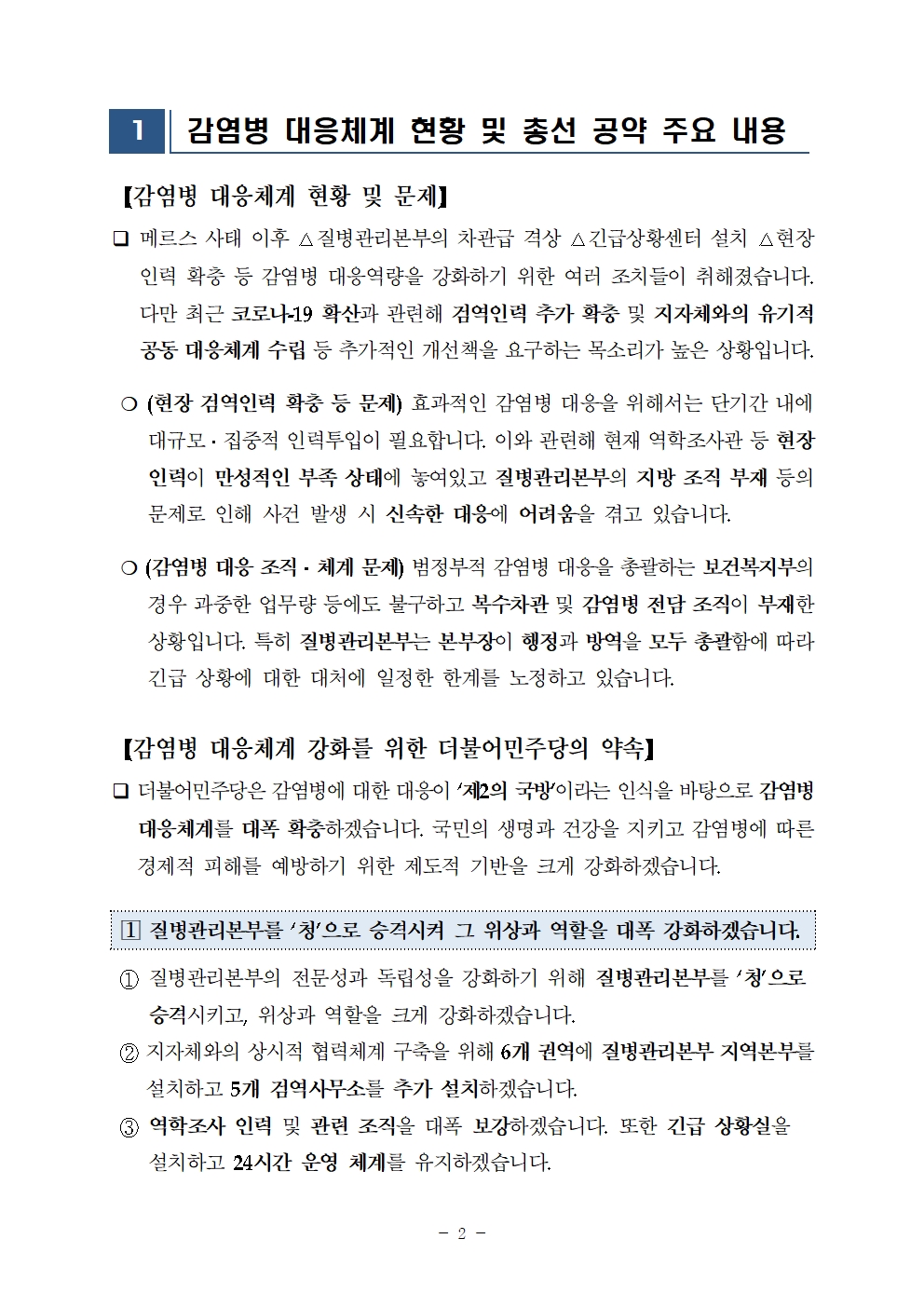 [총선 공약-보건의료] 감염병 대응체계를 강화하고 공중보건 위기대응 능력을 높이겠습니다.