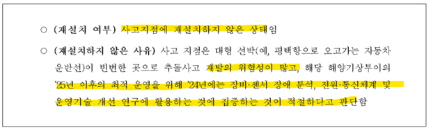 특히 공단은 “부이가 예정대로 설치 못 한 데 대한 귀책 사유가 있는 주체에 대해 배상 청구를 해야 한다”라면서, 과학원의 책임도 완전히 배제할 수 없다고 덧붙였다.