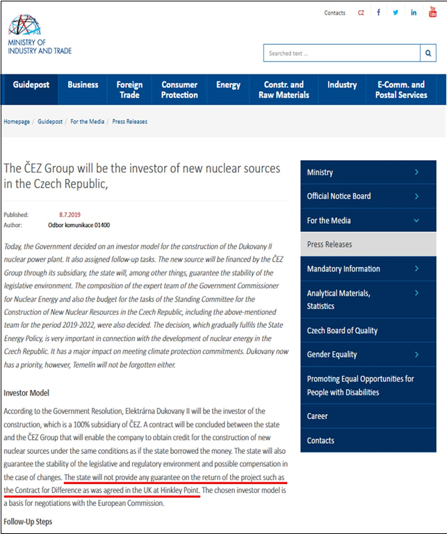 <사진1> 체코 산업통상부 홈페이지 보도자료 영문판(2019.7.8.)
