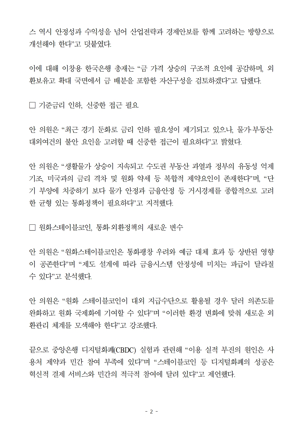 [국회의원 안도걸 보도자료] 외환보유고를 국가전략자산으로 인식해야... 구성 다변화 필요성 강조