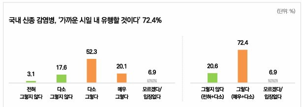 □ 국내 신종 감염병, ‘가까운 시일 내 유행할 것이다’ 72.4%