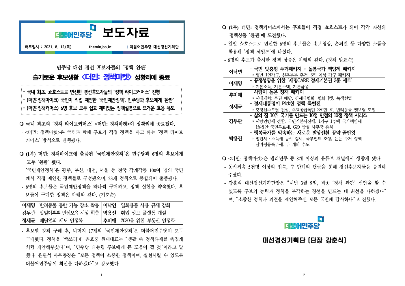 [보도자료] 더불어민주당 정책마켓 종료 보도자료