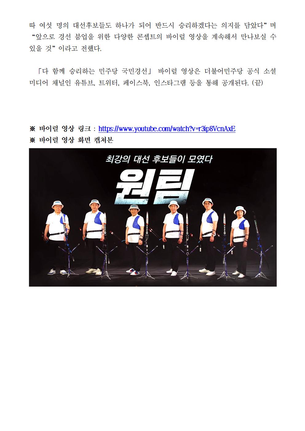 [보도자료] 더불어민주당, 대선 경선 후보자 6인 참여 광고 공개