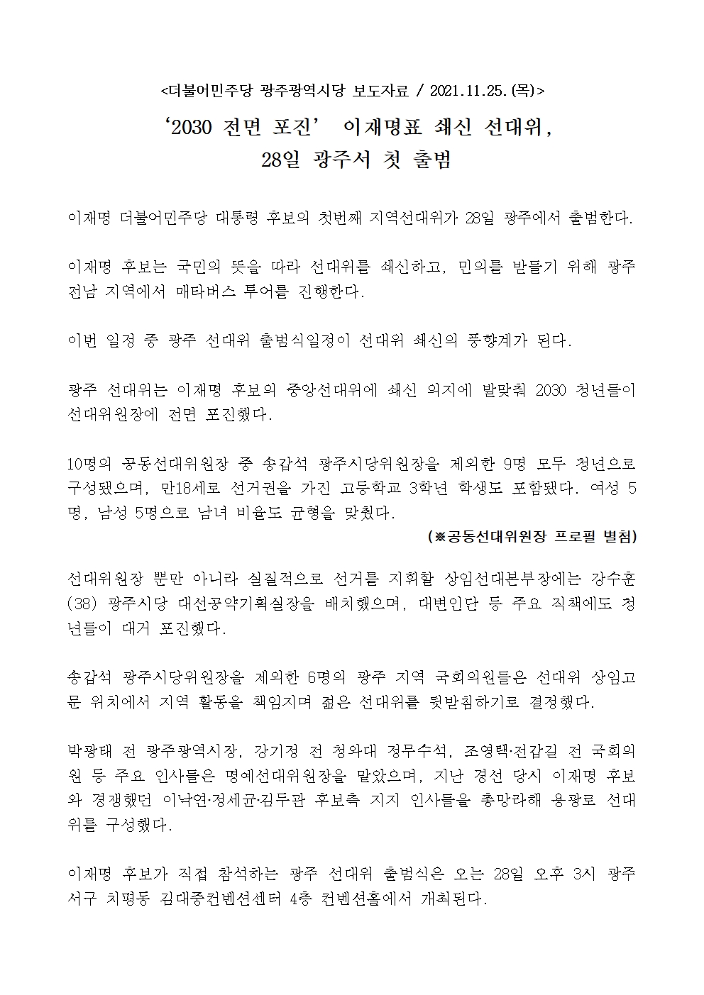 1125_‘2030_전면_포진’_이재명_첫_지역선대위_28일_광주서_출범.hwp