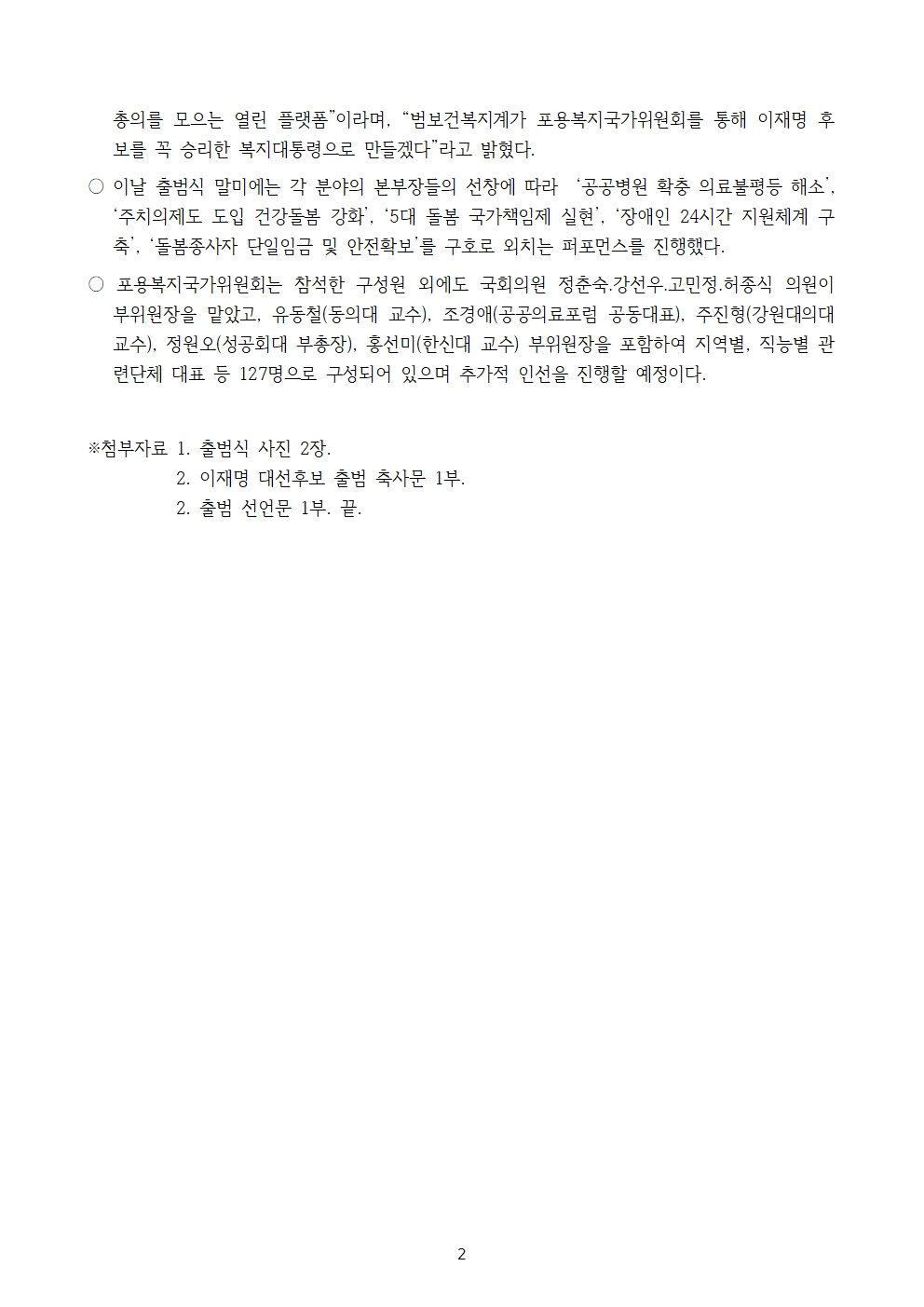 [보도자료] 더불어민주당 중앙선거대책위원회 포용복지국가위원회 출범식 개최