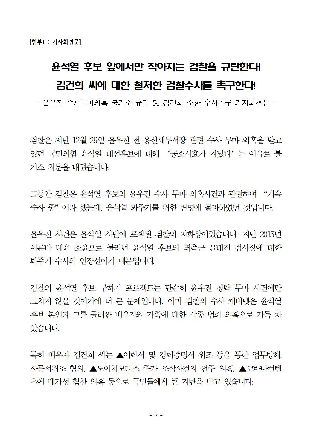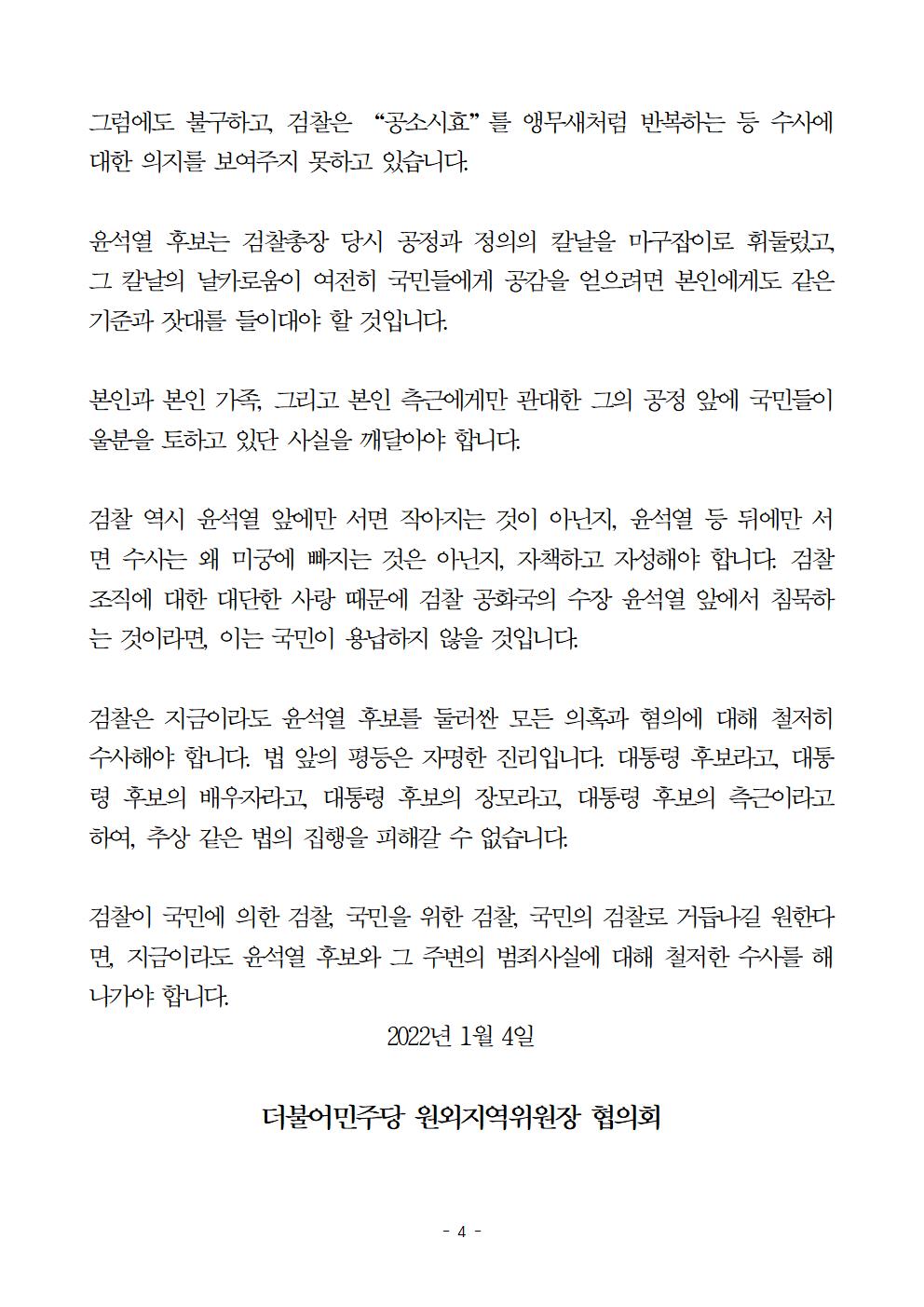 [보도자료] 더불어민주당 원외지역위원장 협의회 윤석열 불기소 규탄 기자회견