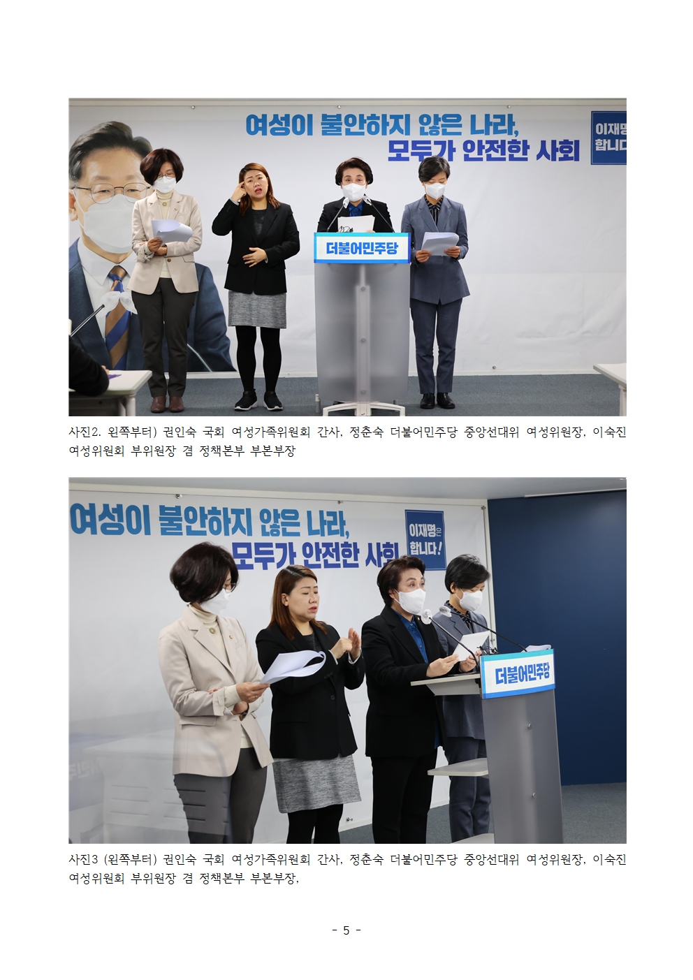 [보도자료] 더불어민주당 선대위 여성위원회·정책본부, "여성이 불안하지 않은 나라, 모두가 안전한 사회" 이재명 '젠더폭력 근절' 정책공약 발표