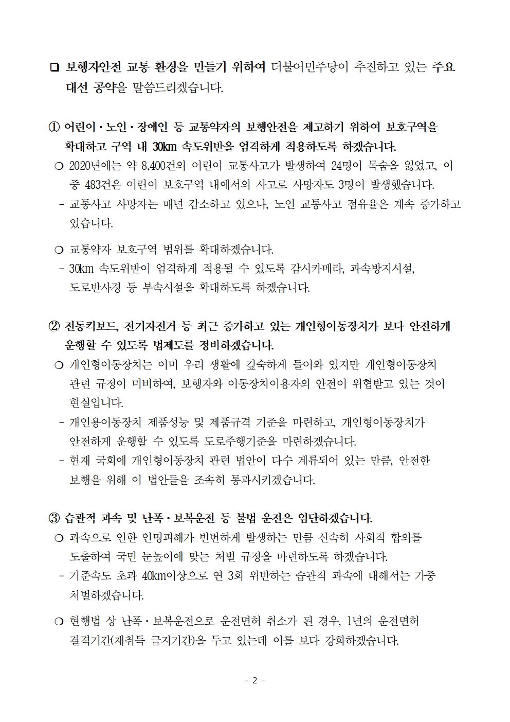 [보도자료] 더불어민주당 선대위 정책본부, 보행자 안심 교통환경 공약 발표
