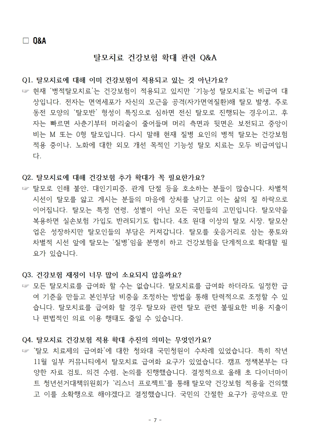 [보도자료] 더불어민주당 선대위 정책본부, '이재명은 합니다. 소확행 공약 시리즈 46' 탈모치료 건강보험 적용 확대 공약