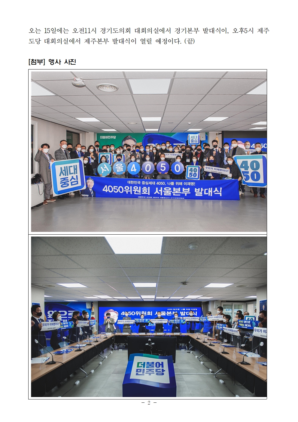 [보도자료] 더불어민주당 선대위 4050위원회 서울본부 출범