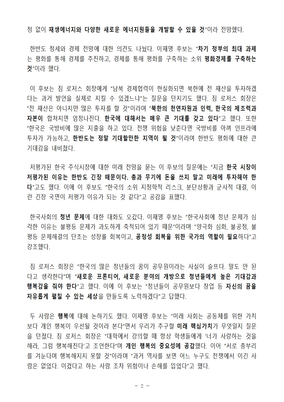 [보도자료] 더불어민주당 선대위 미래기획단, 이재명-짐 로저스 '대전환의 시대, 세계 5강으로 가는 길' 경제 대담