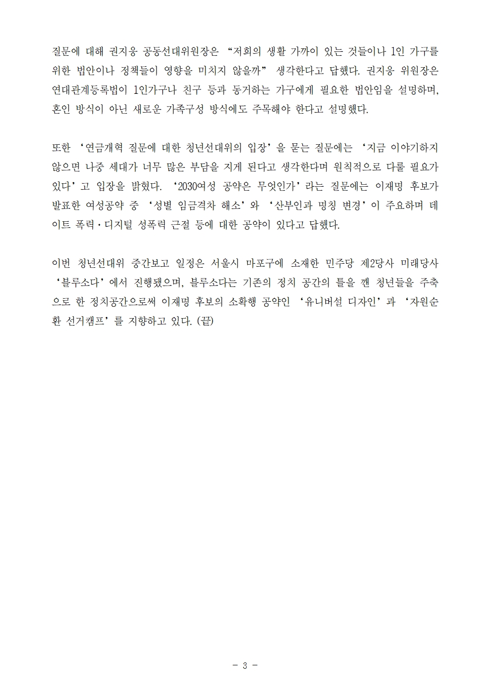 [보도자료] 더불어민주당 다이너마이트 청년선대위 중간보고회 개최