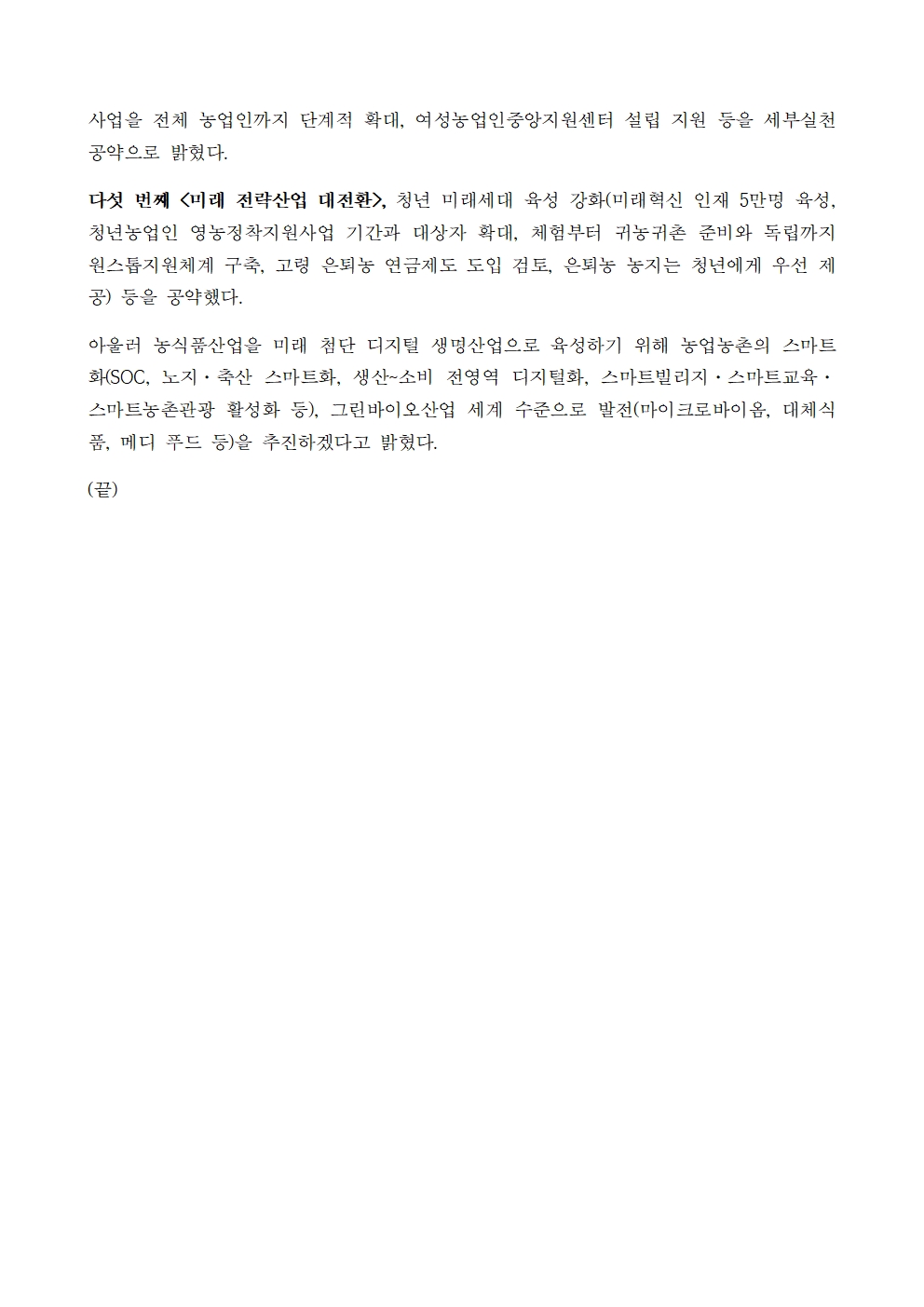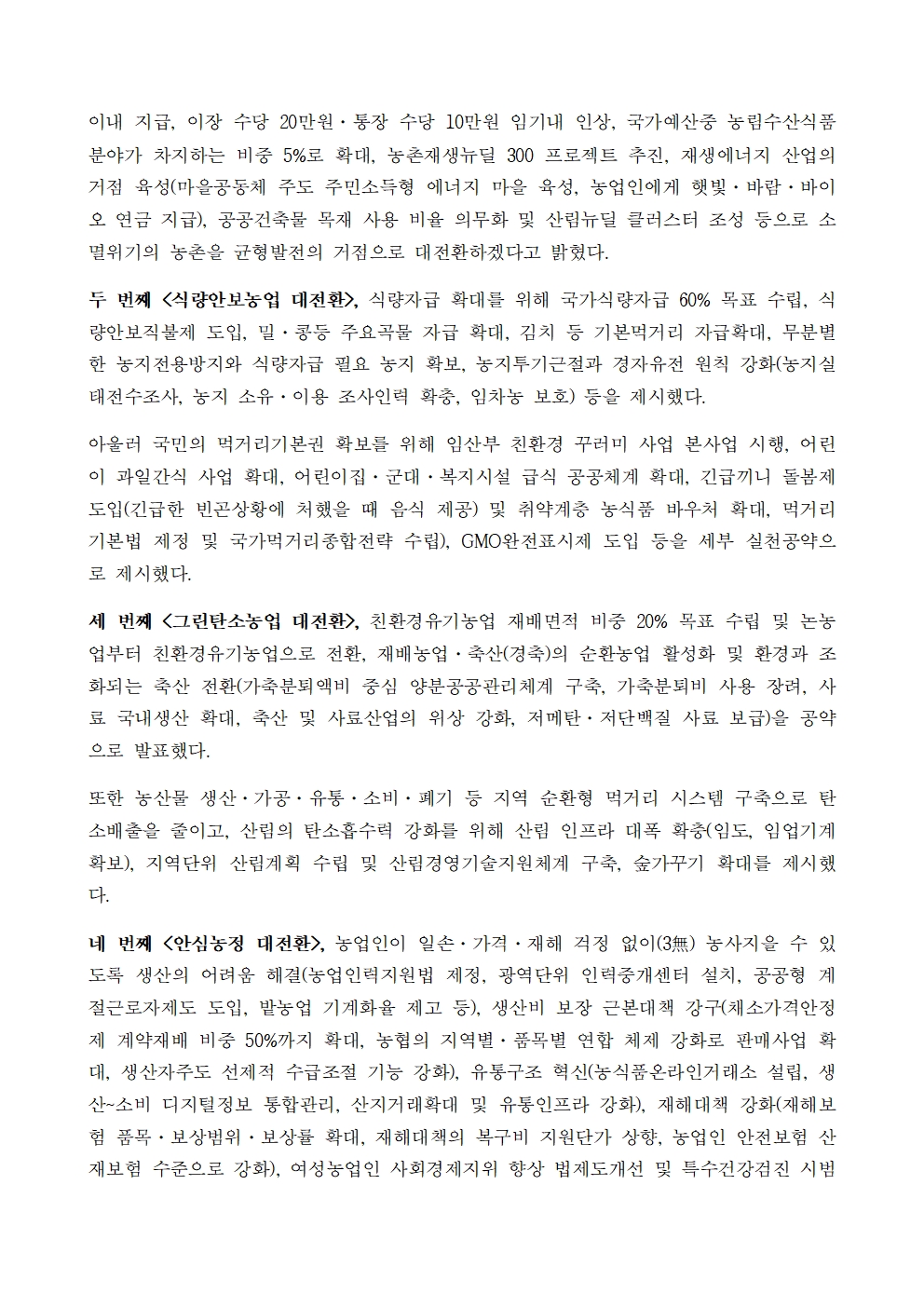 [보도자료] 더불어민주당 선대위 정책본부, 농업농촌 대전환 5대 정책공약 발표