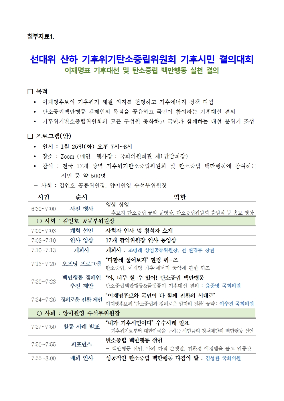 [보도자료] 더불어민주당 선대위 기후위기탄소중립특별위원회, 탄소중립 백만행동 '찐 기후시민 결의대회' 개최