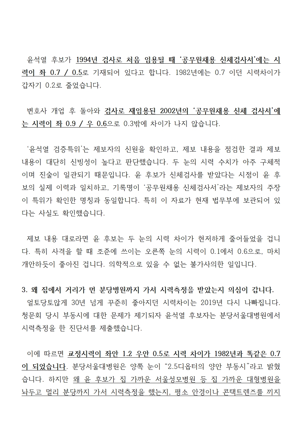[기자회견문] 더불어민주당 윤석열 일가 부정부패 국민검증특위, 윤석열 후보는 검사 시절 신체검사를 공개하라
