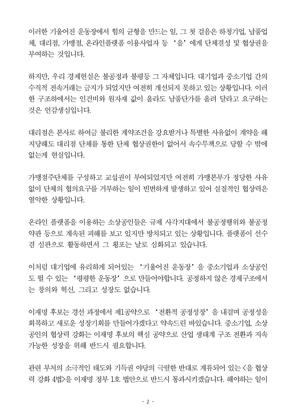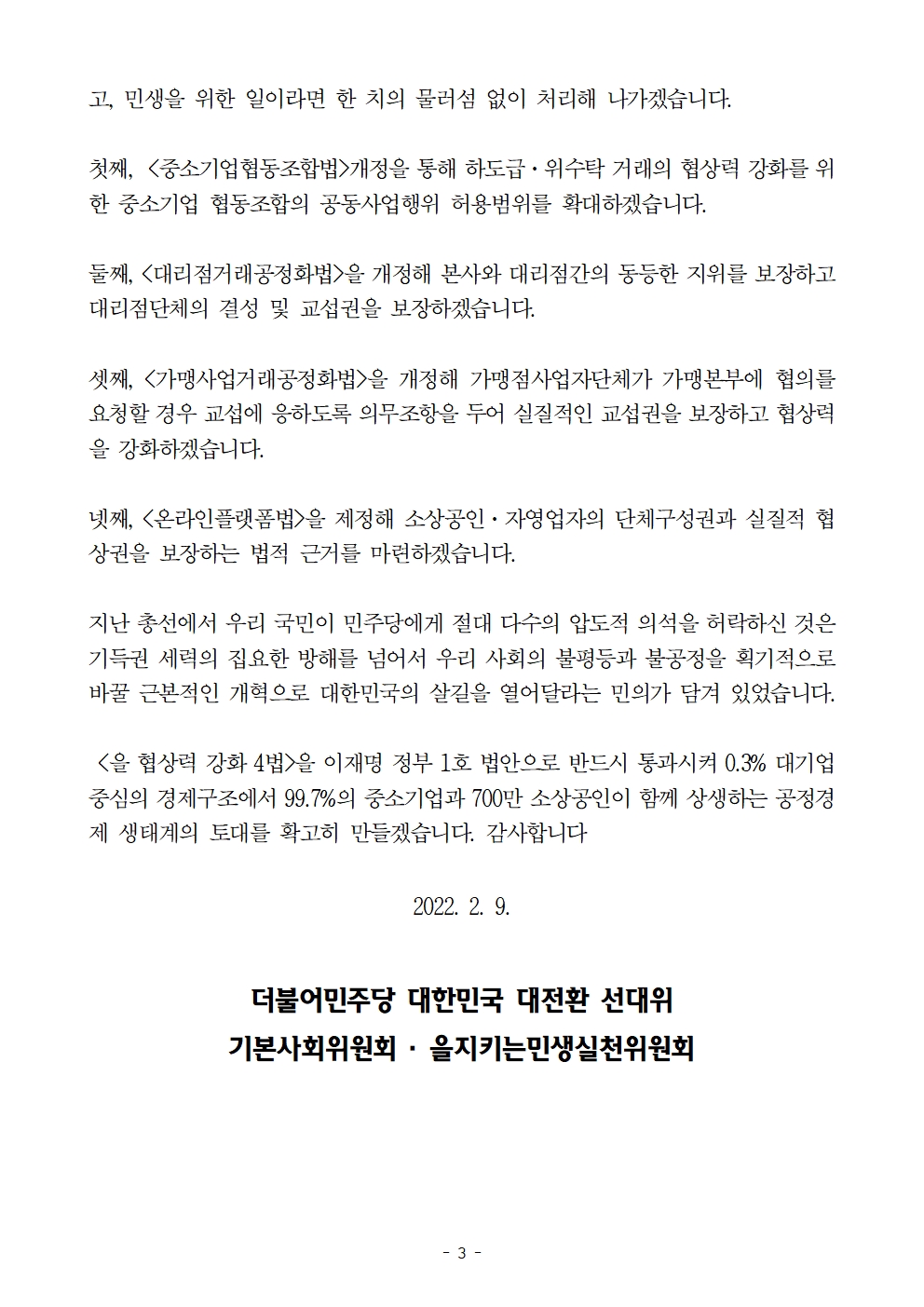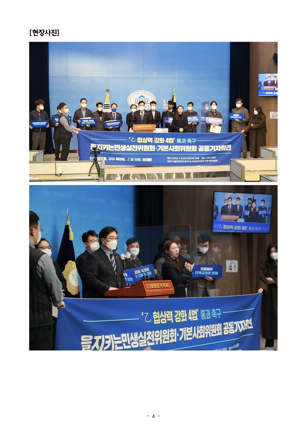 [보도자료] 더불어민주당 선대위 을지키는 민생실천위원회, '을 협상력 강화 4법' 통과 촉구 기자회견
