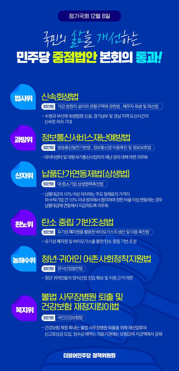 국민의 삶을 개선하는 민생 중점법안 4개 통과