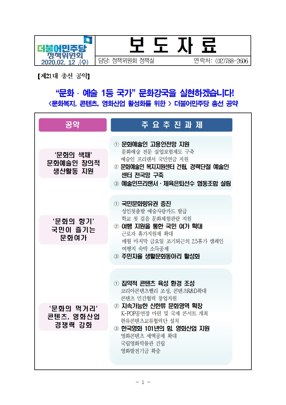 200212_보도자료(정책위)_문화예술_강국_총선_공약_최종.hwp