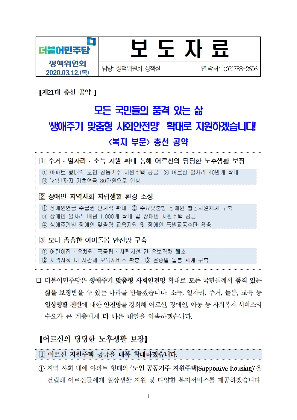 200312_보도자료(정책위)_복지정책_총선공약.hwp