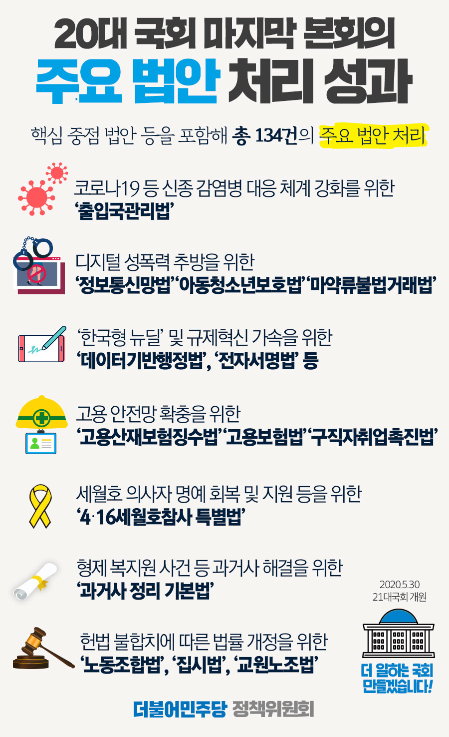 20대 국회 마지막 본회의 주요법안 처리 성과