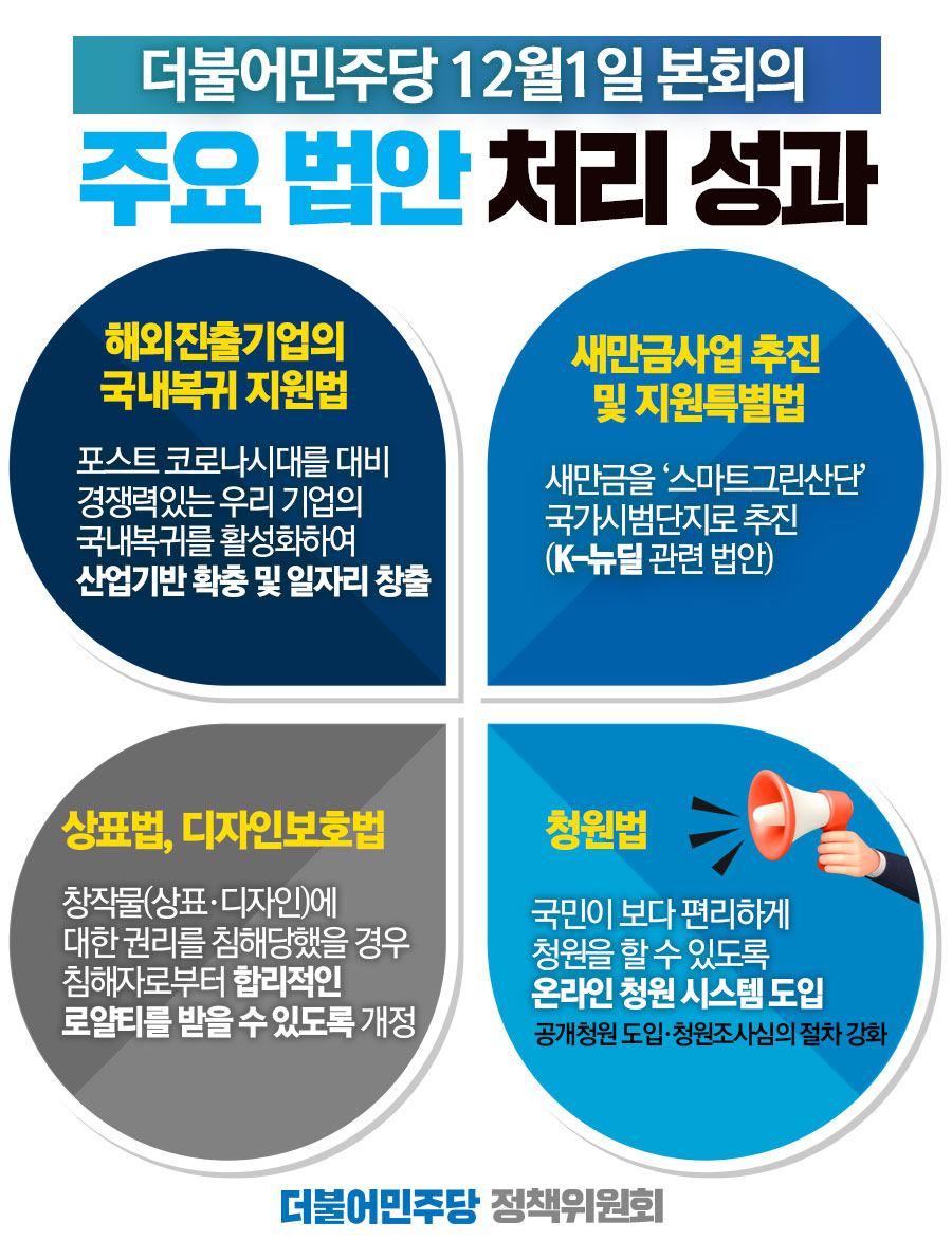 12월 1일 본회의 주요 법안 처리 성과