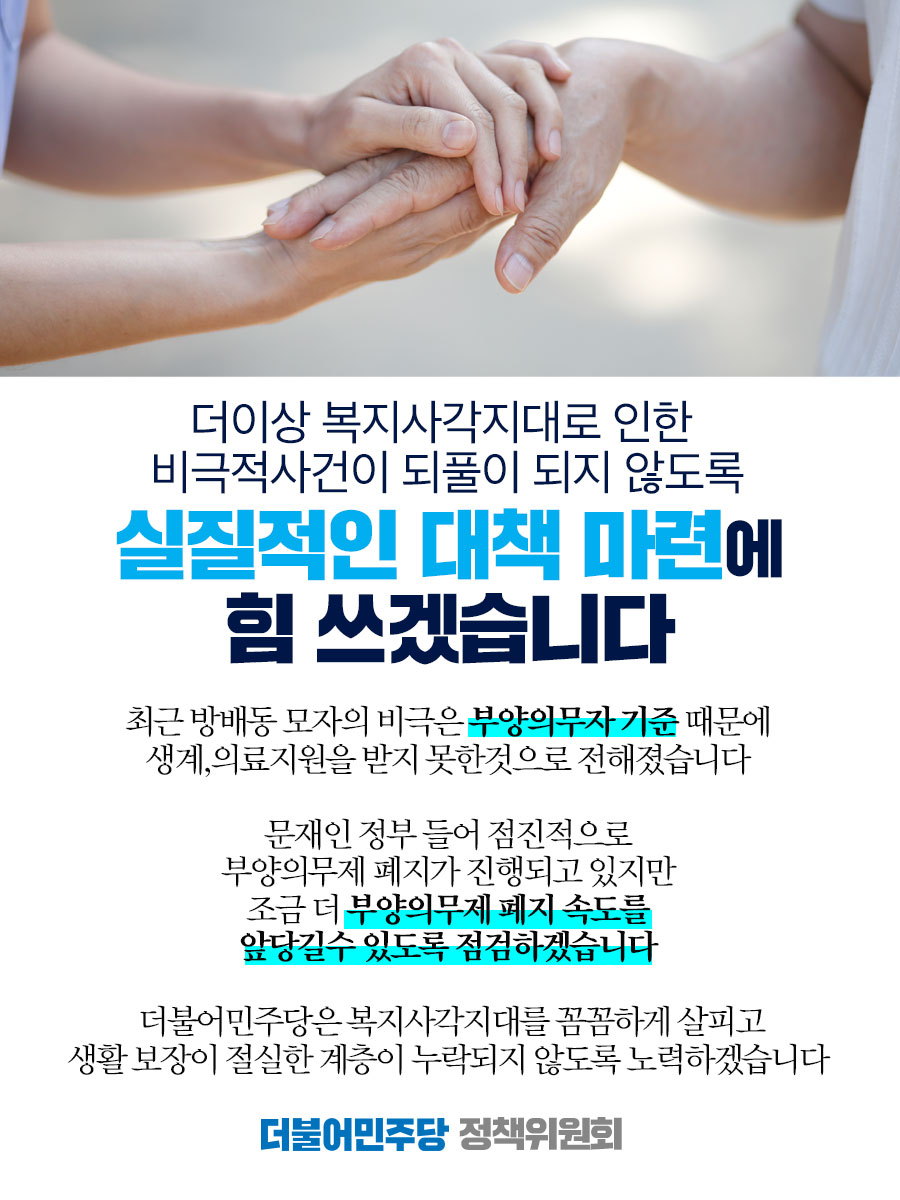 부양의무제 폐지 속도를 앞당길수 있도록 점검하겠습니다