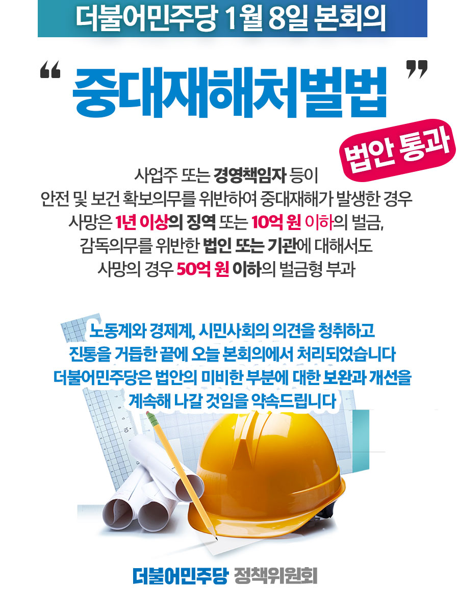 1월 8일 본회의 '중대재해처벌법' 법안통과!