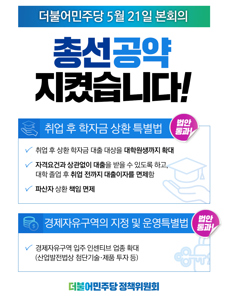 총선 공약, 지켰습니다! (본회의 통과 내용)