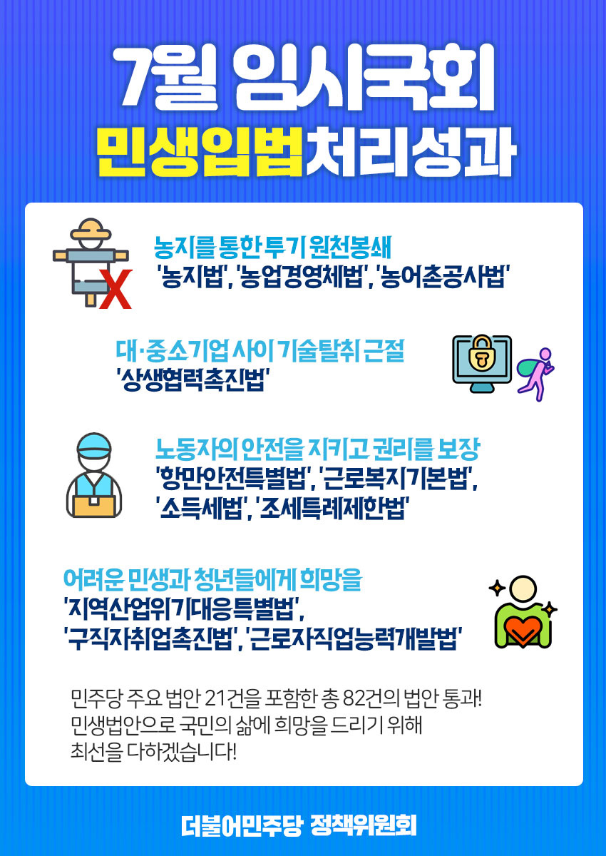 7월 임시국회 민생입법 처리성과