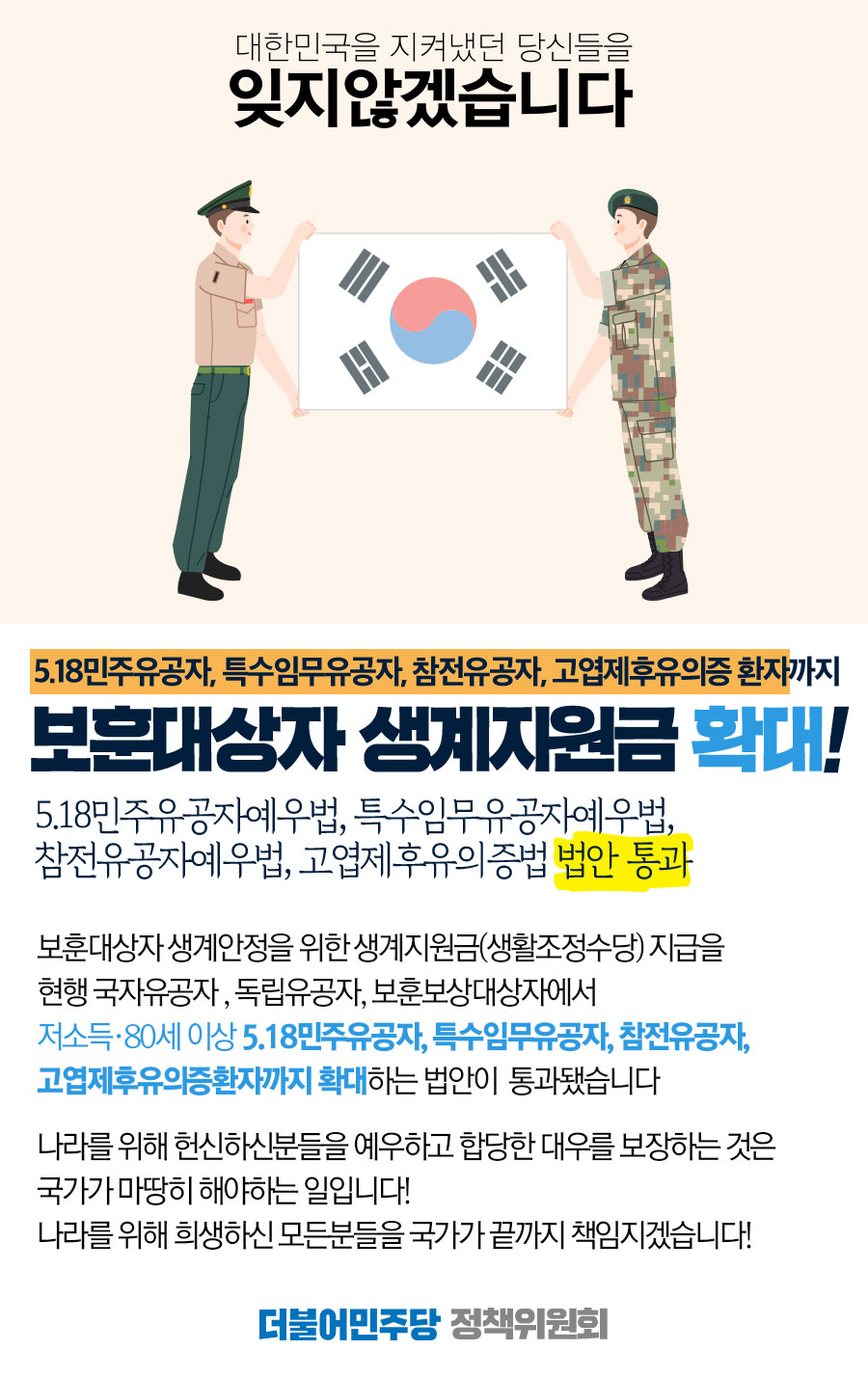 보훈대상자 생계지원금 확대!