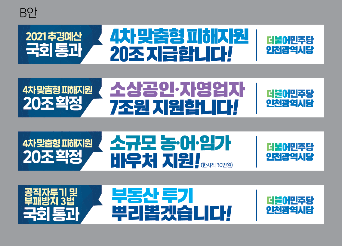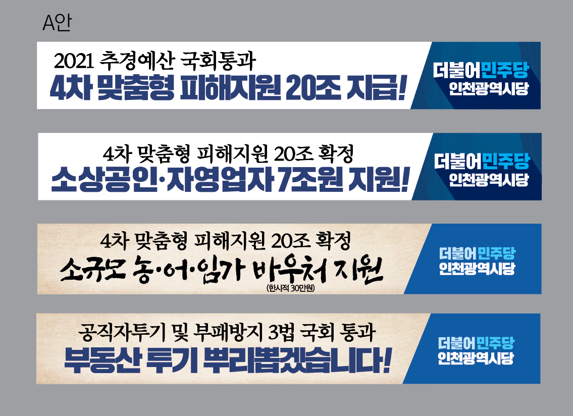 4차 재난지원금 등 정책현수막 디자인 4종(A/B안)