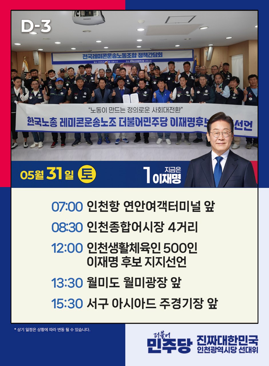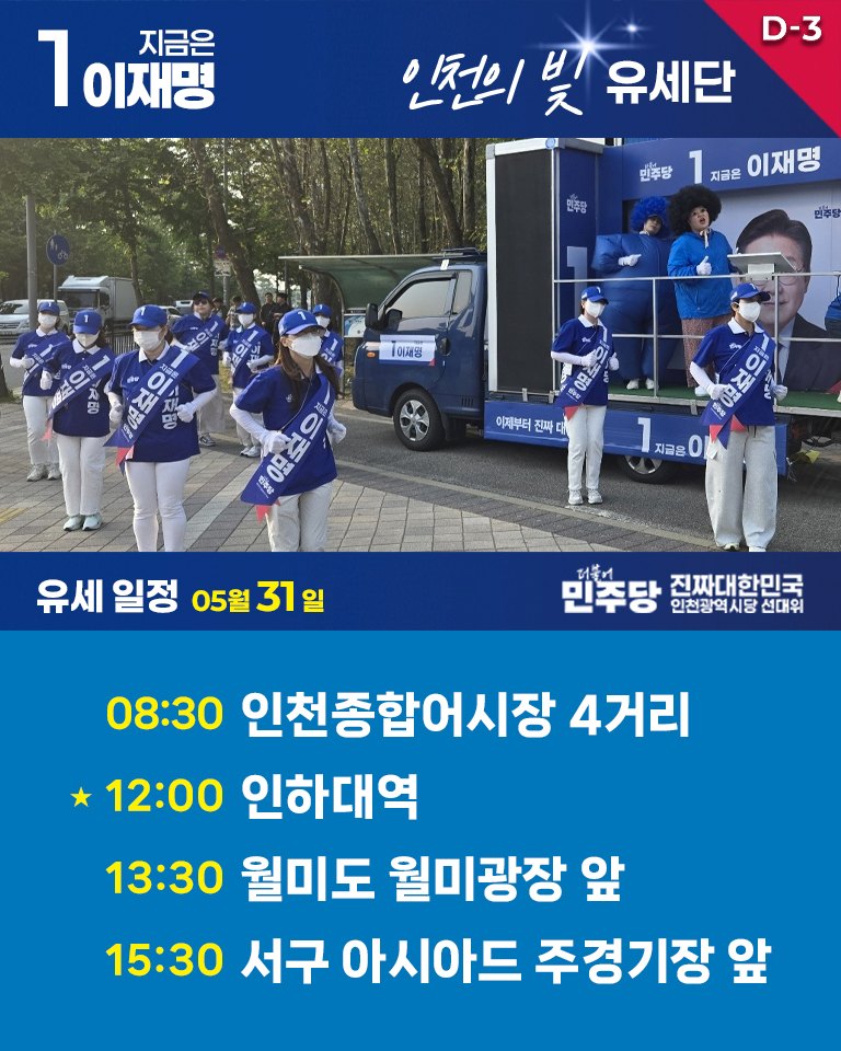 - [카드뉴스] 5월 31일 인천의빛 유세일정