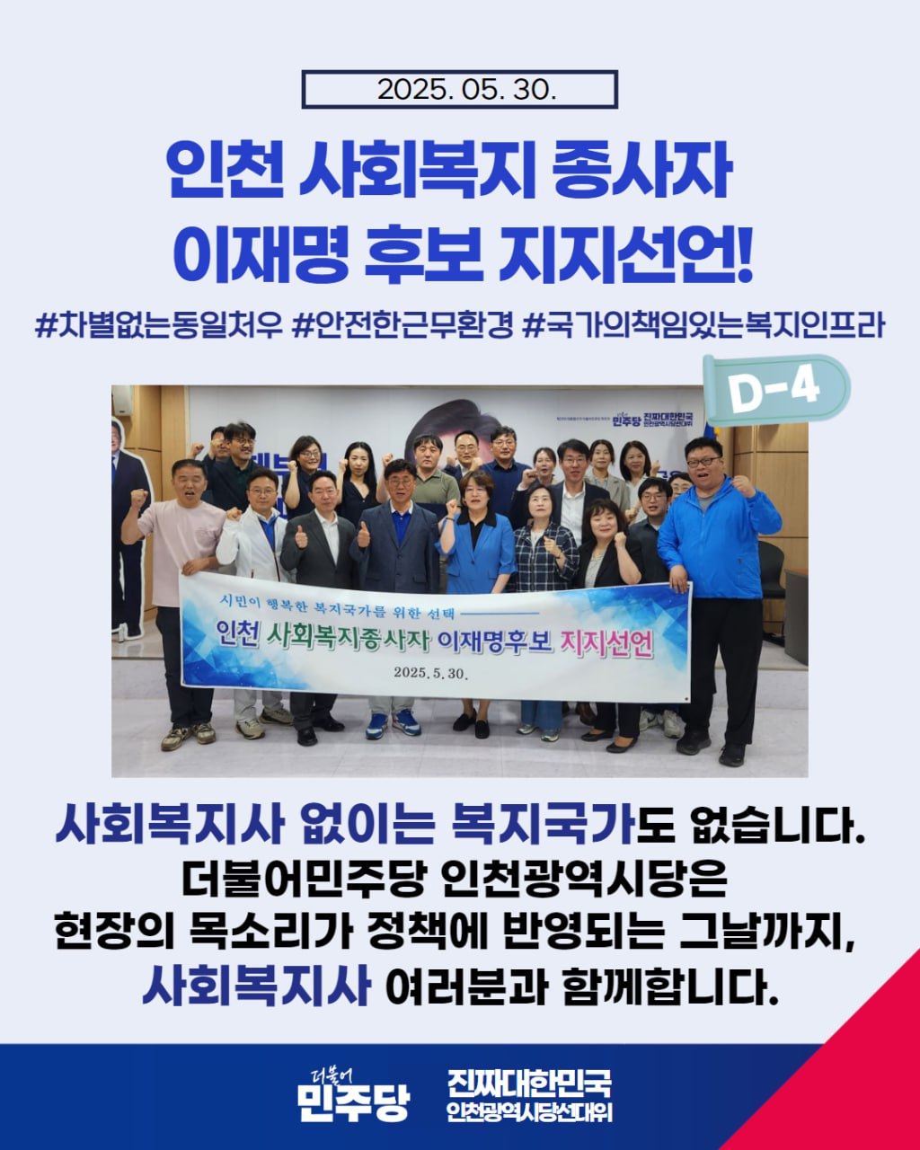 - [카드뉴스] 인천사회복지종사자 이재명 후보 지지선언