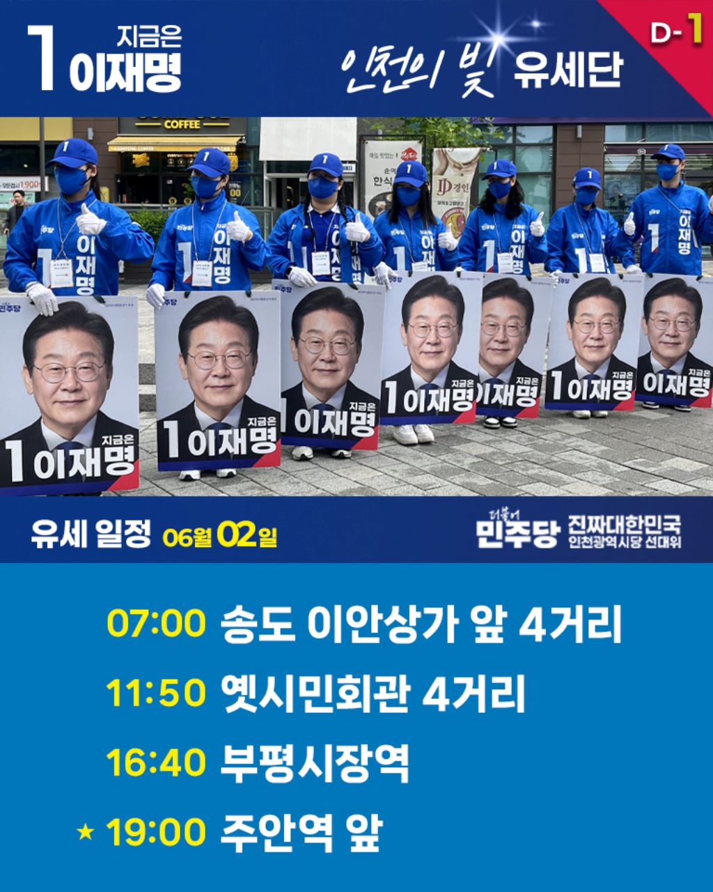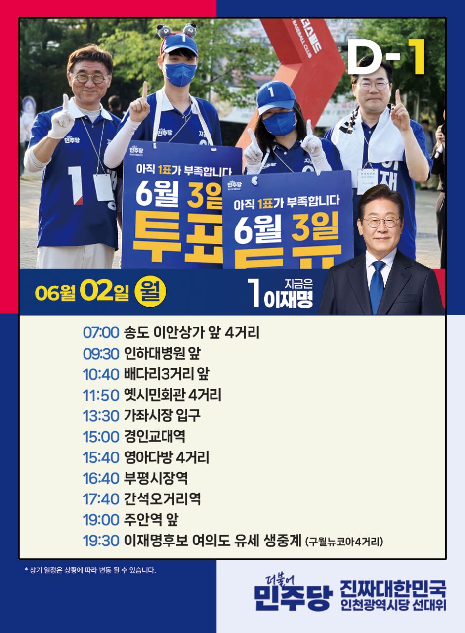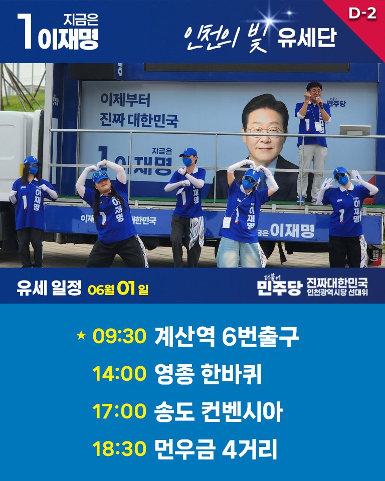 - [카드뉴스] 6월 1일 인천의빛 유세일정
