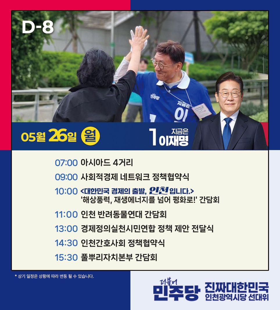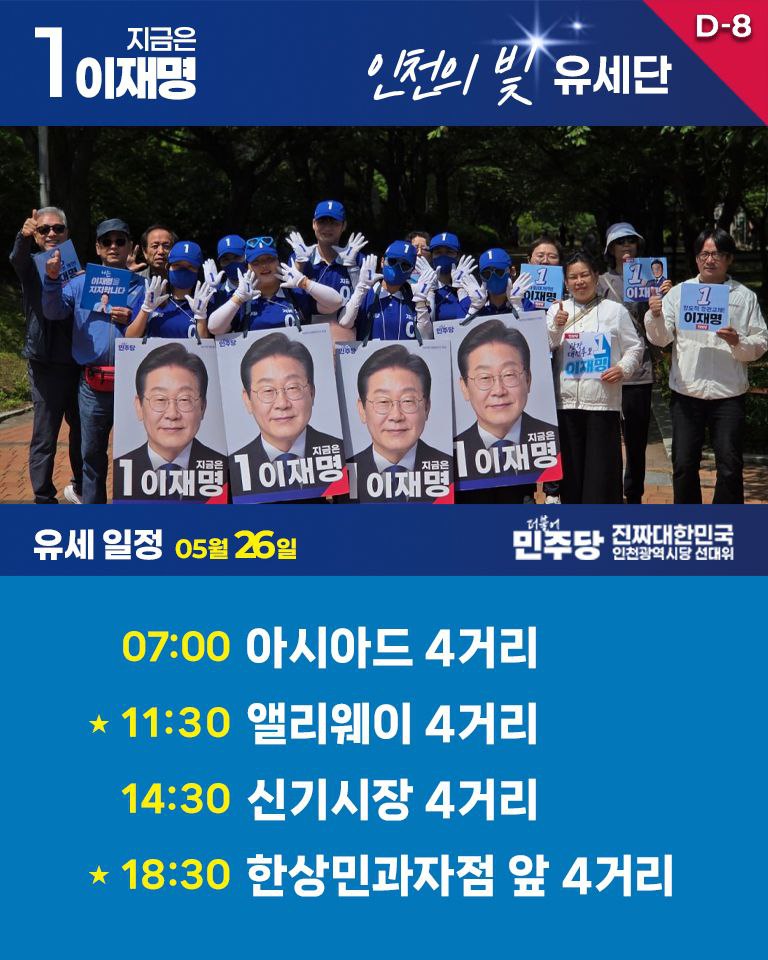 - [카드뉴스] 5월 26일 인천의빛 유세일정