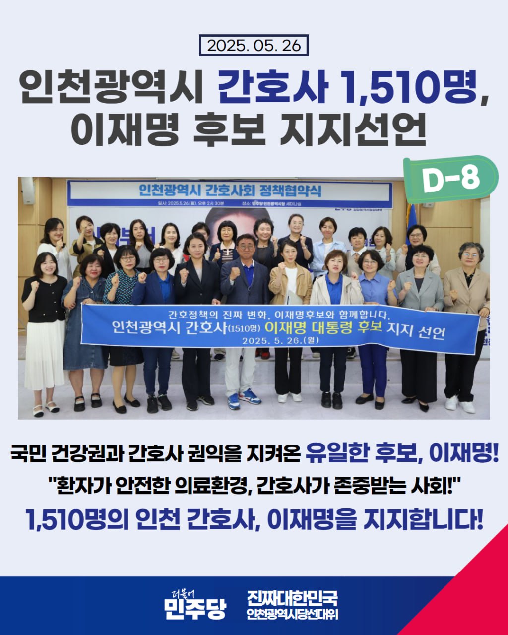 - [카드뉴스] 인천시 간호사 1,510명 이재명 후보 지지선언